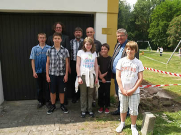 Nach dem Mittagessen (Bratwürste, Steaks mit allem, was dazugehört) enthüllte der Bürgermeister der Gemeinde Maroldsweisach zusammen mit Gesamtleiter Marcel Pelikan und Schulleiter Veit Schmitt eine gravierte Tafel als „Dankeschön“ für die Sponsoren des neuen Spielplatzes auf dem Heimgelände, der auch den Kindern und Eltern aus Pfaffendorf zur Verfügung steht.